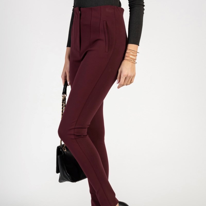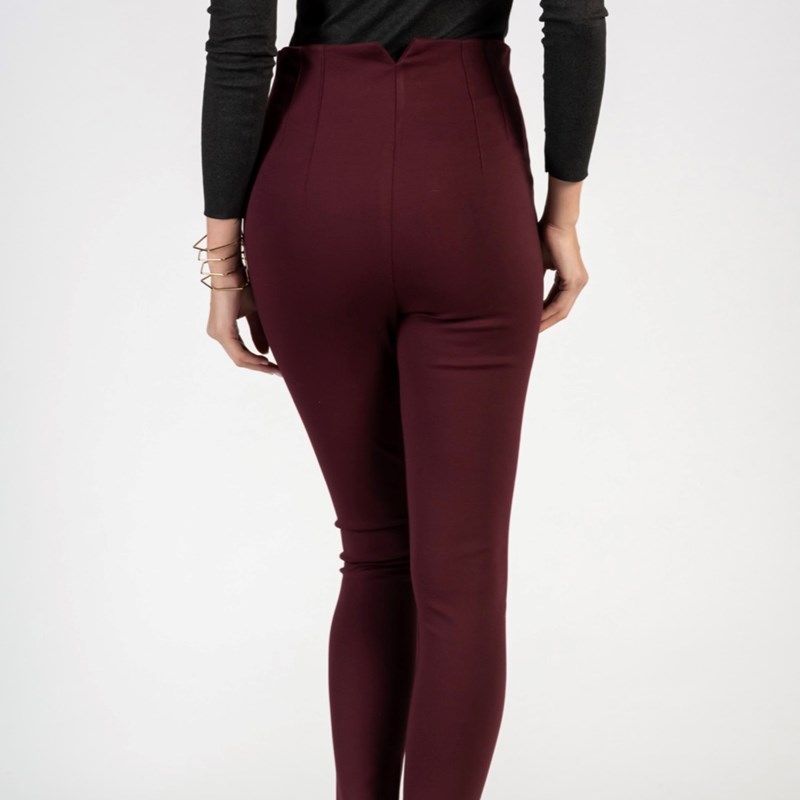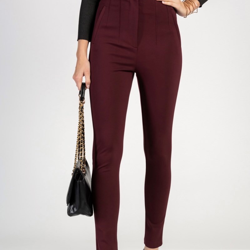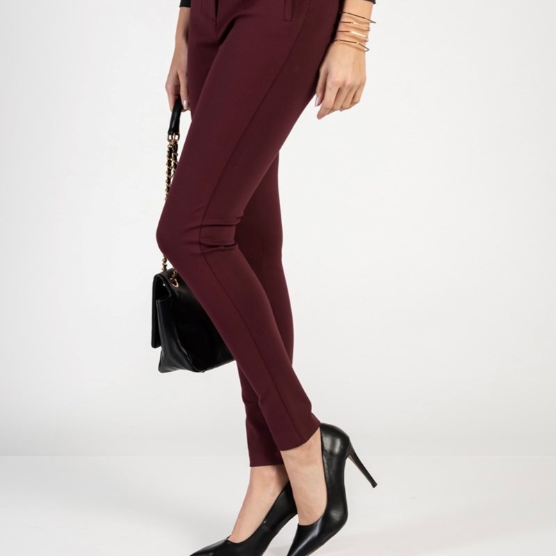 Elegantne duge bordo hlače izrađene su od mekanog materijala visoke kvalitete koji pruža potpunu udobnost tijekom nošenja. Hlače imaju rastezljiv struk i lažne prednje džepove. Hlače su dugačke i ravnog kroja. Proizvod je takođe dostupan u većim veličinama do 3XL i tako prikladan ženama jače tjelesne konstitucije. Hlače će odlično pristajati na vašu omiljenu majicu ili bluzu. Izradjene su od materijala: 65% viskoza, 30% najlon i 5% elastin. Velicine: S = 36 M = 38 L = 40 XL = 42 2XL = 44.