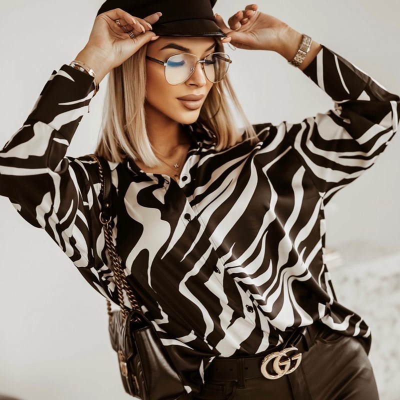 Elegantna košulja širokog kroja izrađena je od visokokvalitetnog materijala koji pruža potpunu udobnost prilikom nošenja. Majica s modnim uzorkom ima klasičan ovratnik. Zakopčava se dugmicima. Proizvod je takođe dostupan u većem broju do 2XL, a prikladan je za žene jače tjelesne konstitucije. Moderna košulja odlično će pristajati na vaše omiljene hlače ili suknju. Izradjena je od poliestera 100 %. Velicine: S=36 M=38 L=40 XL=42 2XL=44