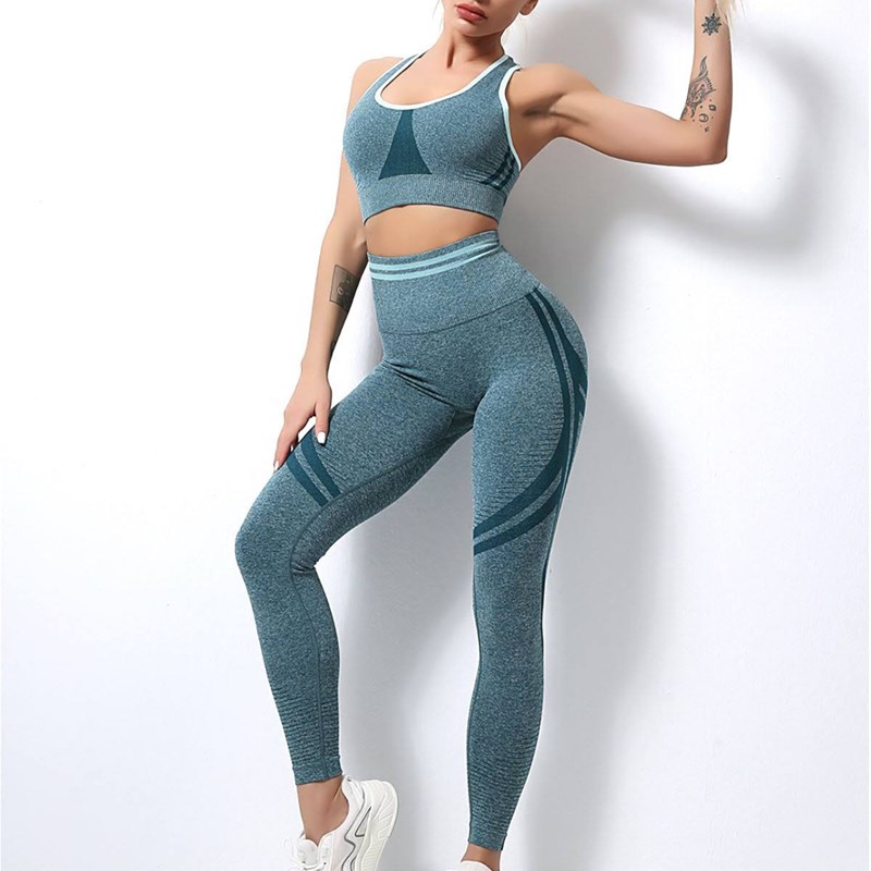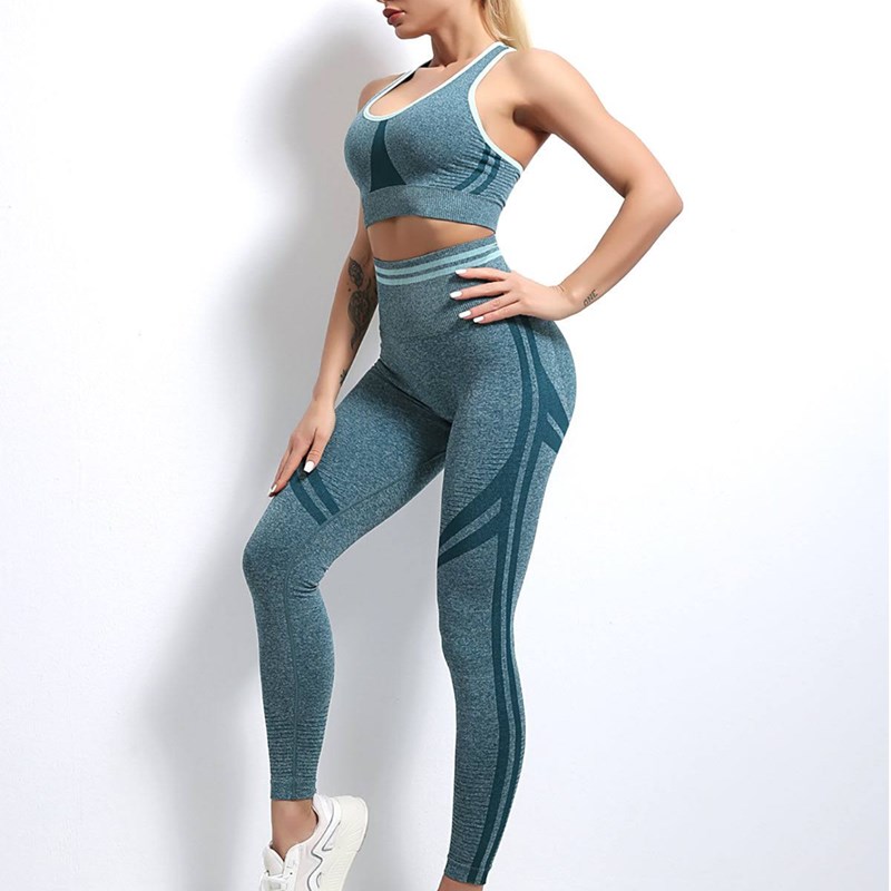 Ženski set za trening. Sastoji se od tajica visokog struka, koje prijanjaju uz tijelo i ističu vašu figuru i crop topa. Sastav kompleta je 60% najlon, 20% polyester i 10% spandex koji im daje elastičnost, što ih čini udobnim i idealnim za trening.
