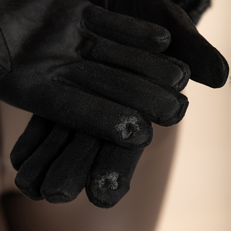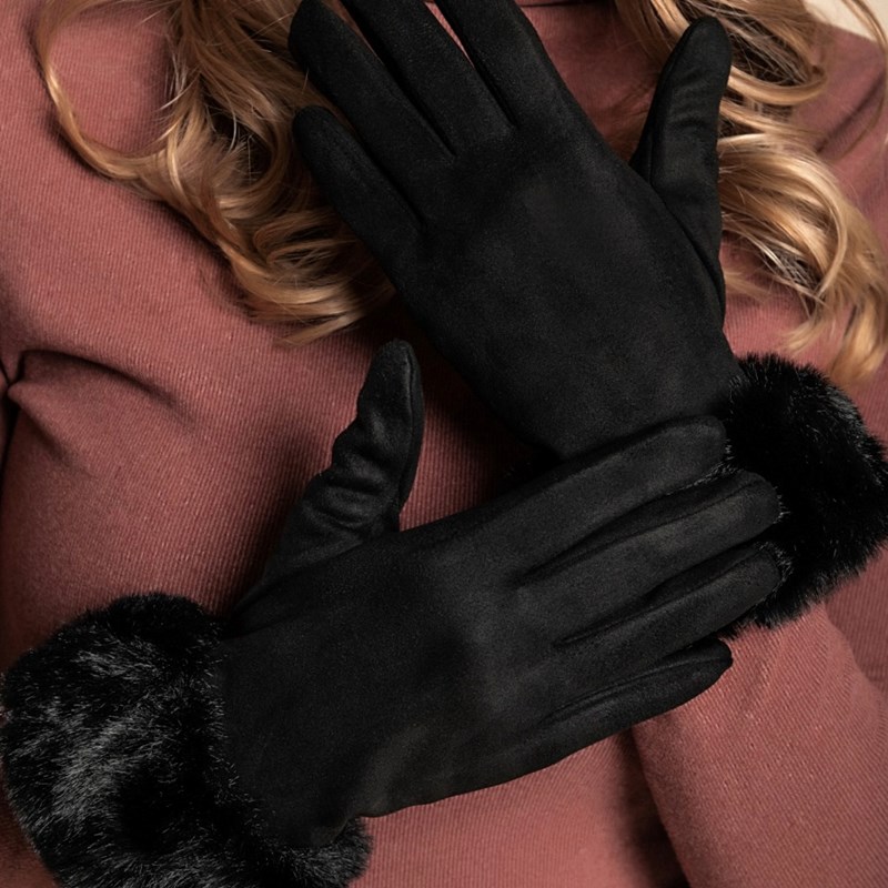 Prelijepe crne rukavice sa krznom. Uz to što Vam griju ruke, ne morate da ih skidate kako bi ste koristili elektronske uredjaje, za to je zaslužan cvjetić sa prednje strane kažiprsta. Veličina je univerzalna.