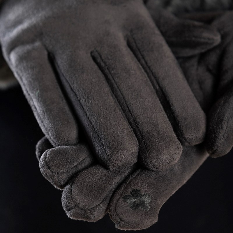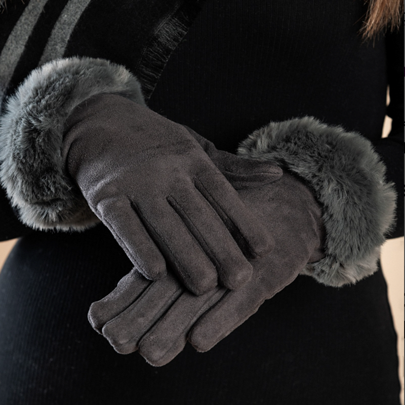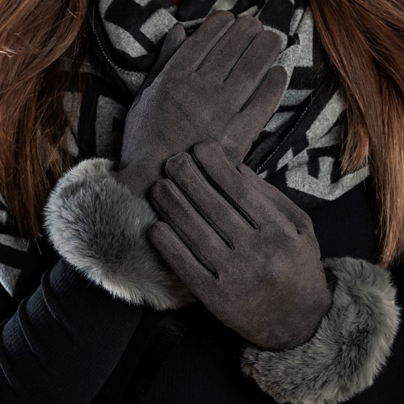 Prelijepe sive rukavice sa krznom. Uz to što Vam griju ruke, ne morate da ih skidate kako bi ste koristili elektronske uredjaje, za to je zaslužan cvjetić sa prednje strane kažiprsta. Veličina je univerzalna.